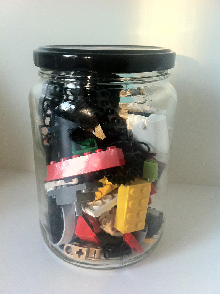 Fyll en glasburk med legobitar och låt sen barnen gissa hur många det är. Det är många fler än man tror!